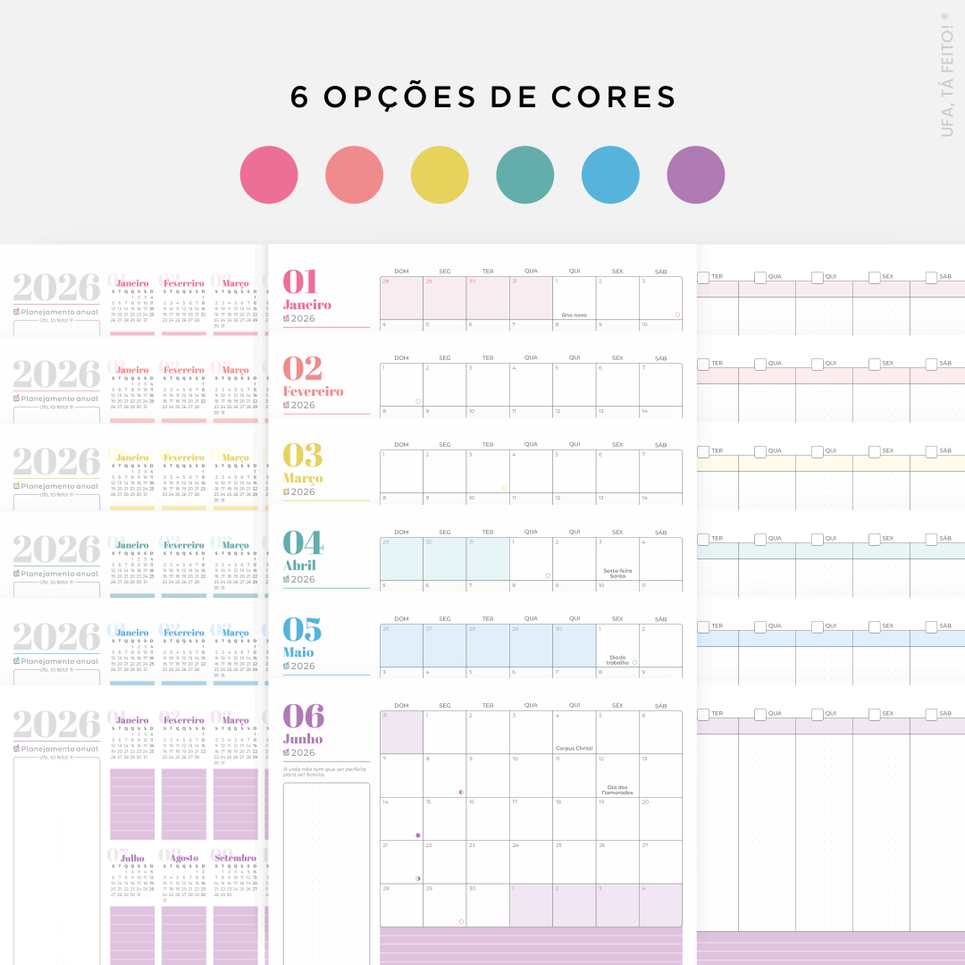 6 cores (Rosa, Laranja, Amarelo, Verde, Azul e Lilás) – Ver imagens ilustrativas