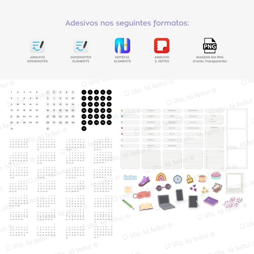 - Adesivos para datar meses e dias, Ilustrações e Widgets (Adesivos PNG com fundo transparente, Noteful Elements, Arquivo Goodnotes, Goodnotes Elements, Arquivo Samsung Notes)