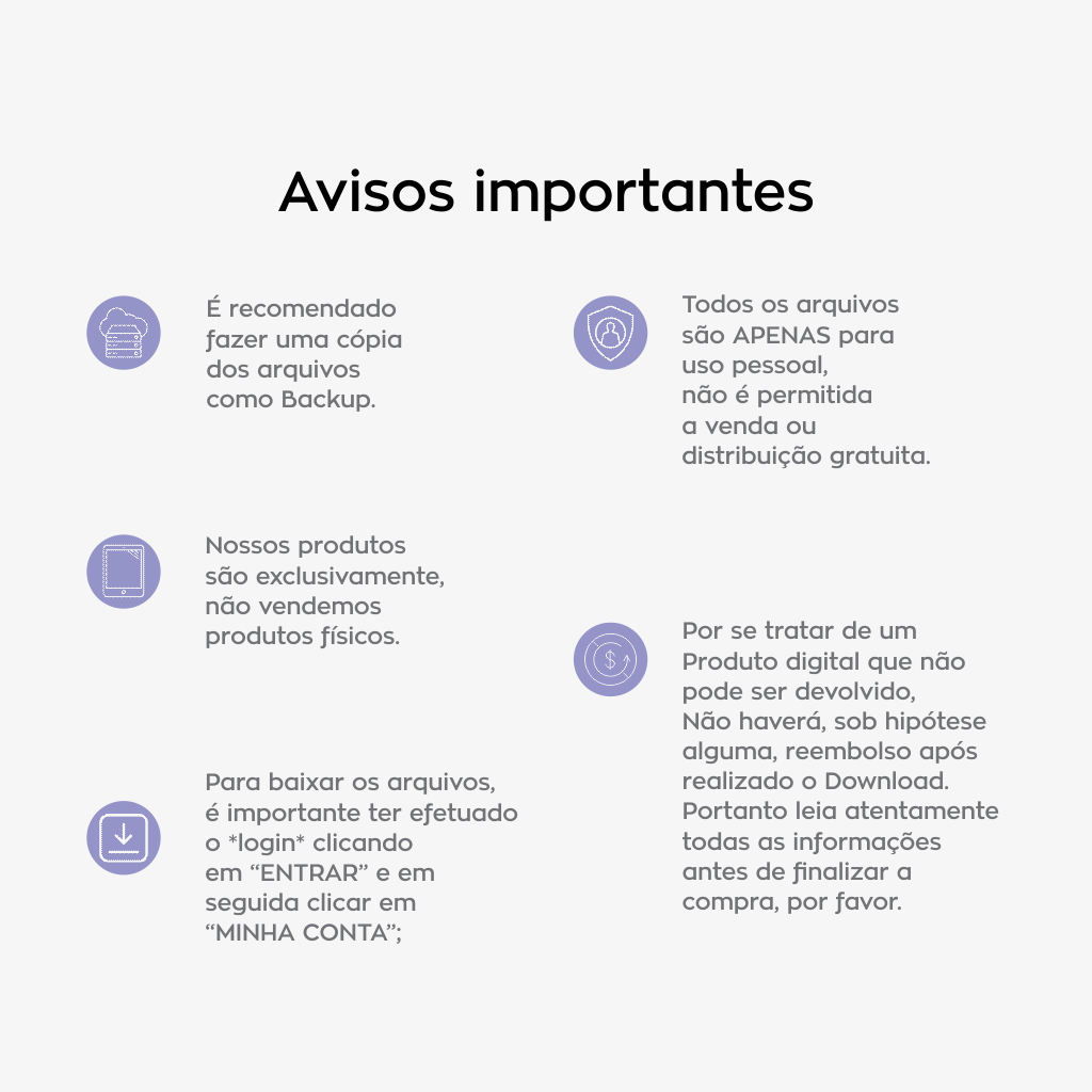 - Não haverá, sob hipótese alguma, reembolso após realizado o Download por se tratar de uma Produto que não pode ser devolvido, então leia atentamente todas as informações antes de finalizar a compra, por favor. ❤
