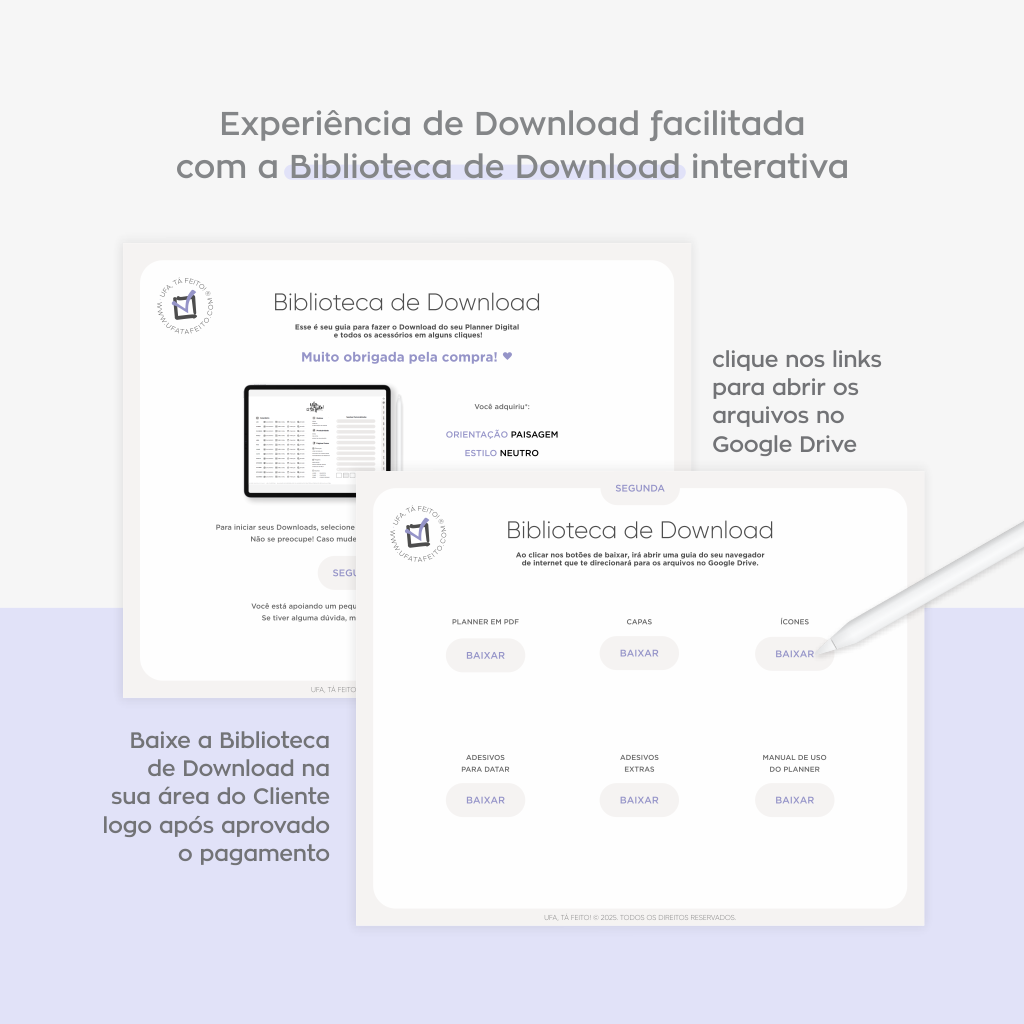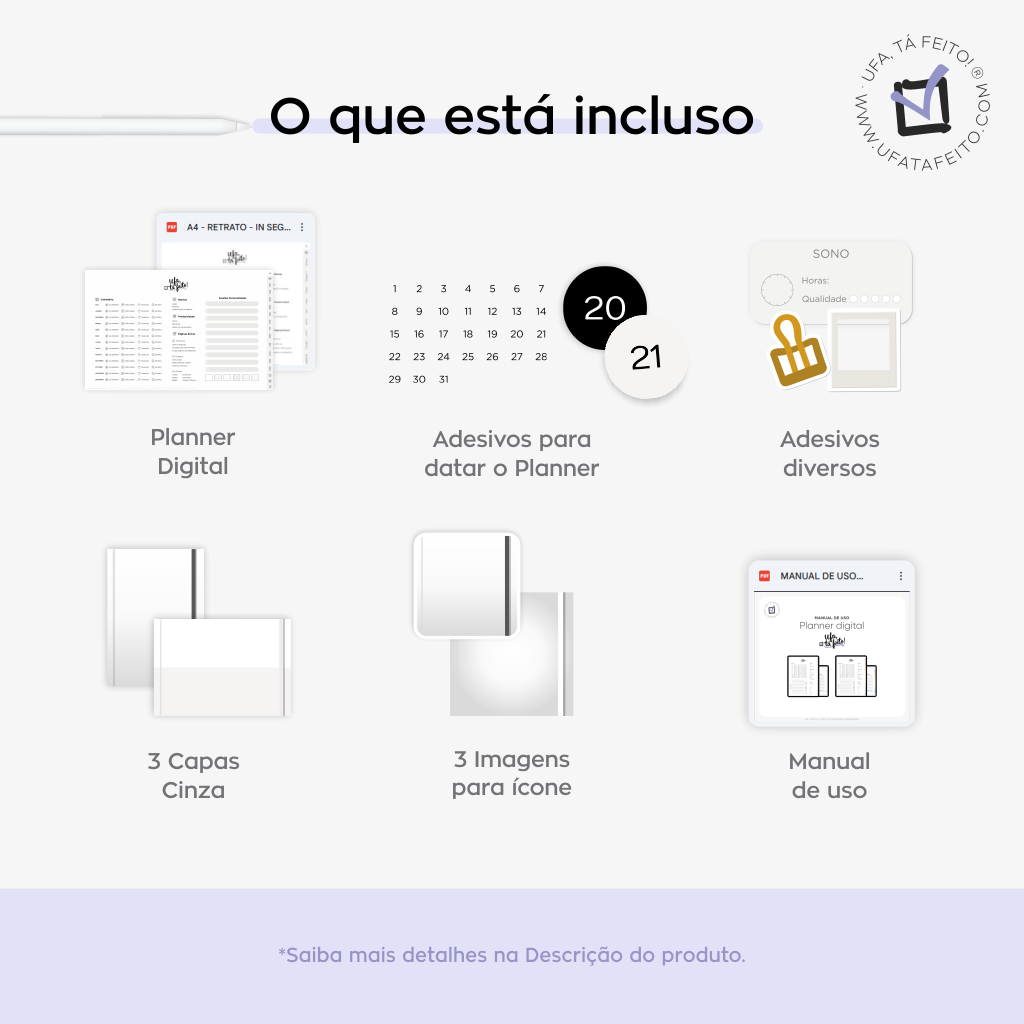 - 3 capas (Em PNG e em PDF) combinando com o Planner